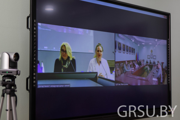 В преддверии празднования Дня единения народов Беларуси и России в Купаловском университете был организован телемост.